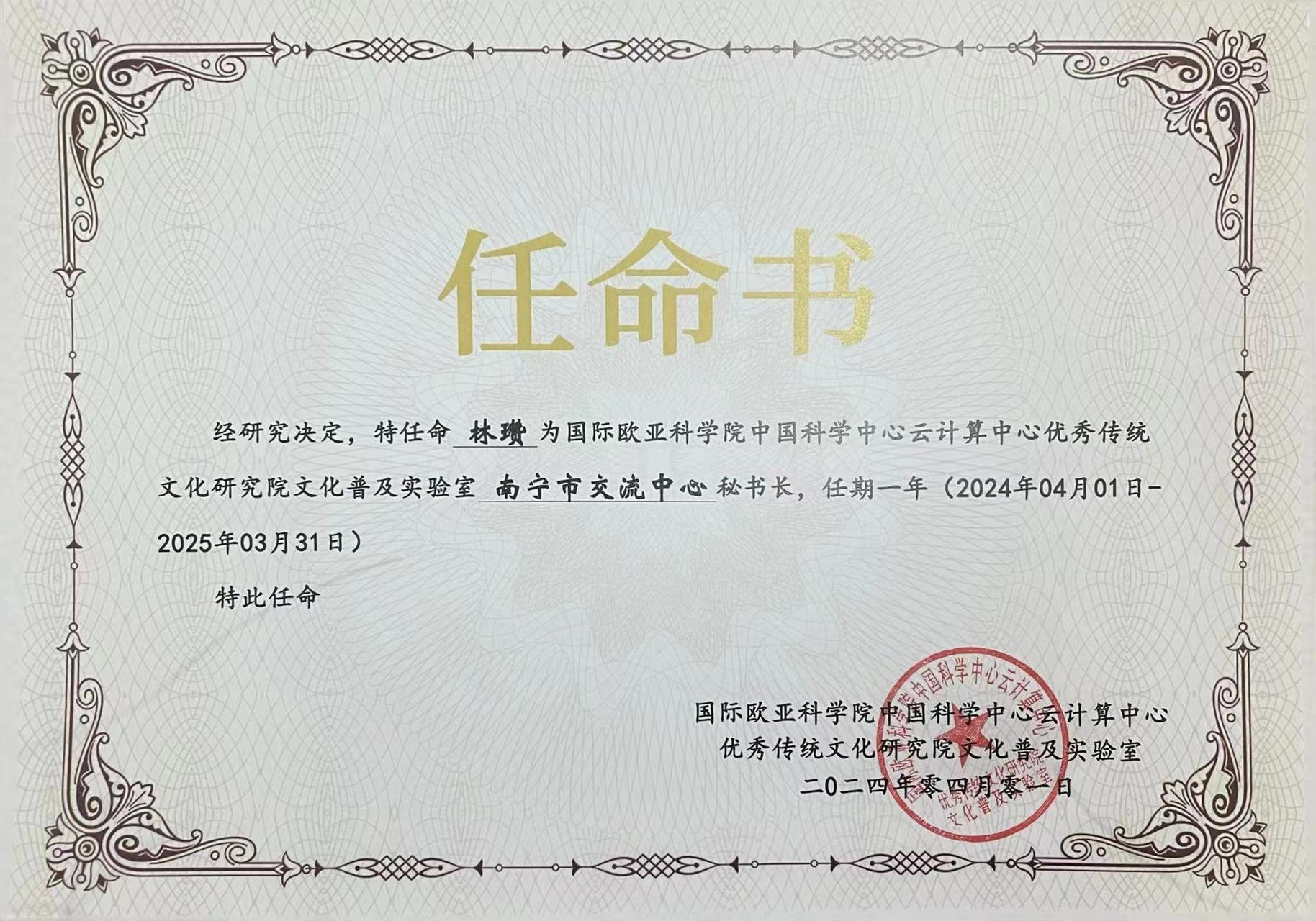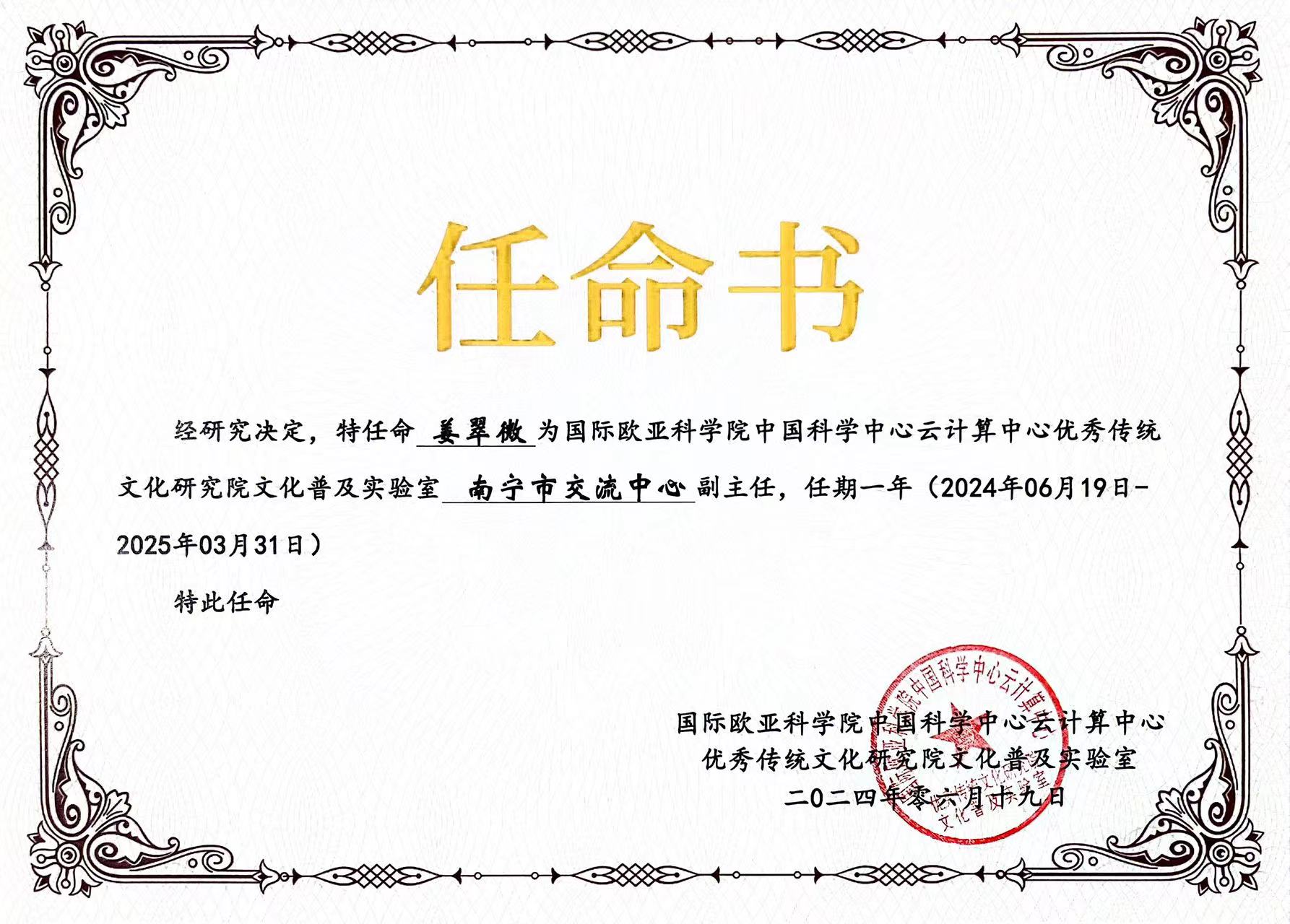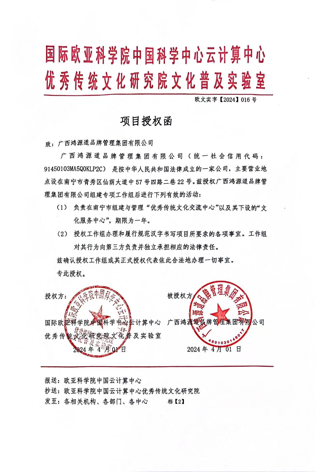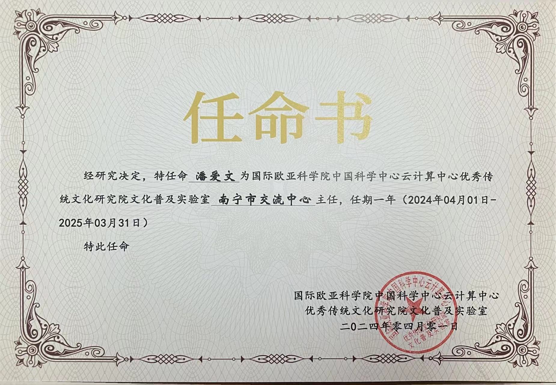 南宁市交流中心 - 广西壮族自治区 - 授权信息 - 欧亚科学院中国科学中心云计算中心优秀传统文化研究院 无标题文档