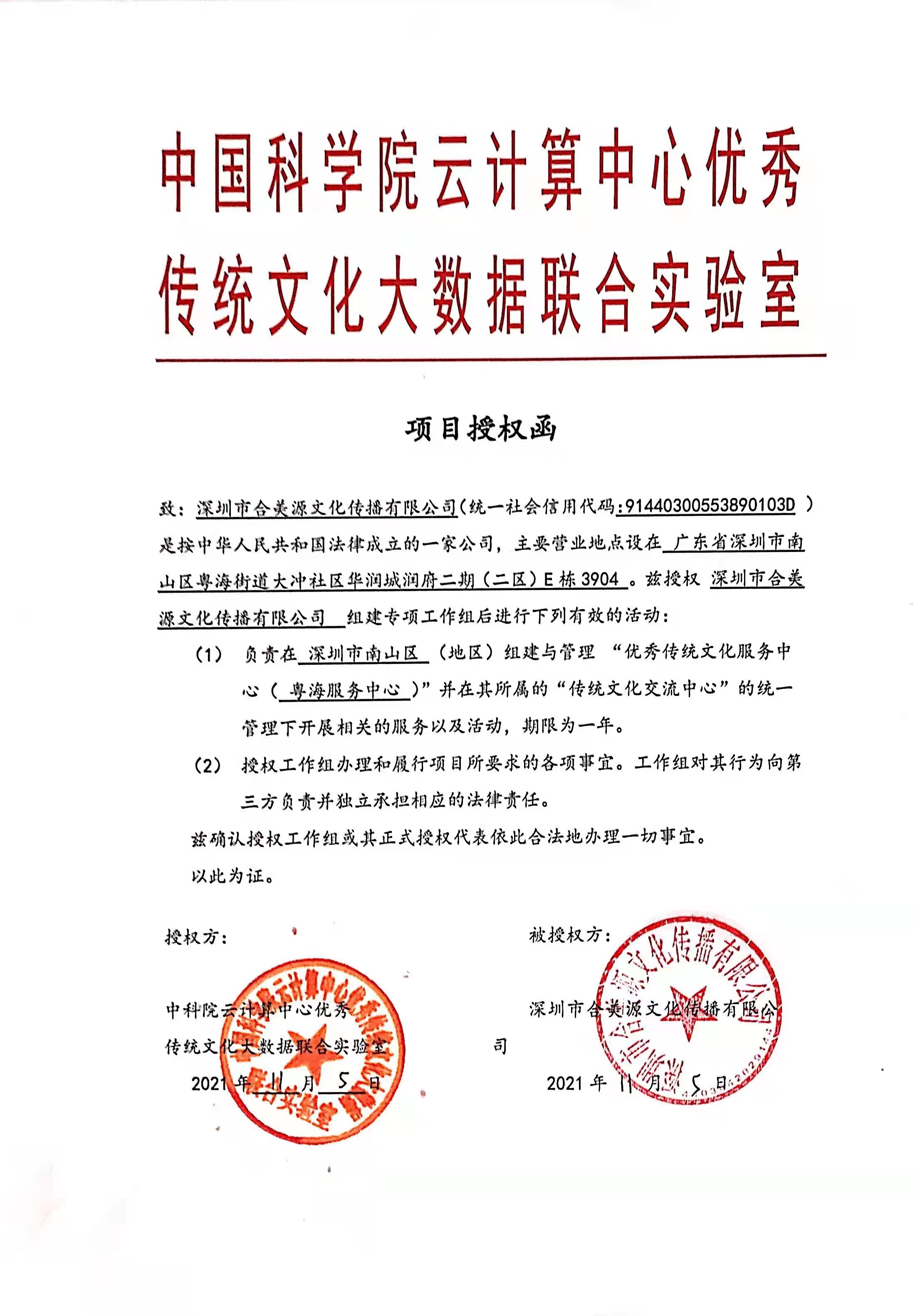 深圳粤海服务中心 - 深圳市交流中心 - 授权信息 - 欧亚科学院中国科学中心云计算中心优秀传统文化研究院 无标题文档